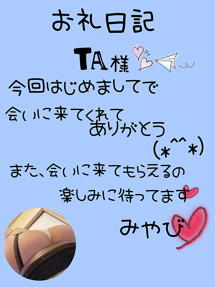 お礼日記☆1月29日(木)☆ 2026年01月29日 21:16 Ta様*¨*. 初めてのご指名、ありがとうございました。 たくさん触れ合いながら、自然と距離が縮まっていく感じが心地よかったです。 いちゃいちゃしながらのおしゃべりも楽しくて、あっという間の時間でした。 またお会いできたら、もっと甘い時間をご一緒したいです。 みやび