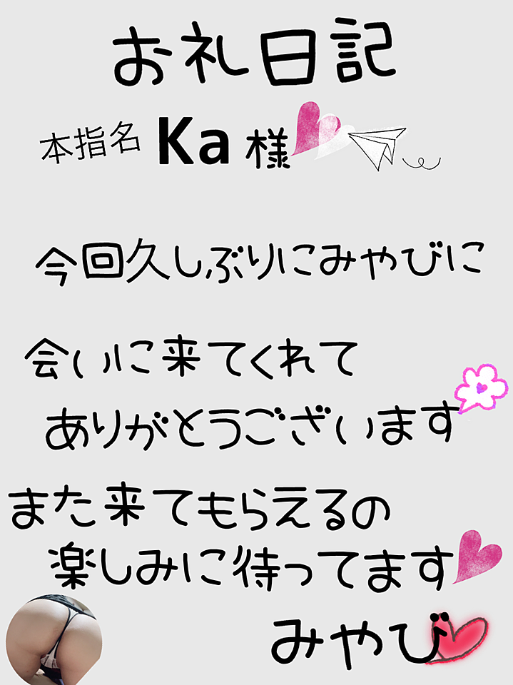 お礼日記 ☆3月20日(金)☆ 2026年03月21日 15:51 本指名ka様*¨*. 今回お久しぶりにみやびに会いに来てくれてありがとうございます 終始楽しいお話しで一緒の時間を共有できて良かった☆ 優しい手でチクビとか触られちゃってかんじすぎちゃいました。 また会えるの楽しみに待ってますね♪ みやび
