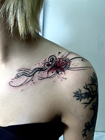 めちゃんこ可愛い蛇と彼岸花です??