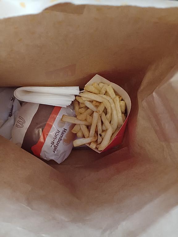 お昼マクドナルド??食べています。